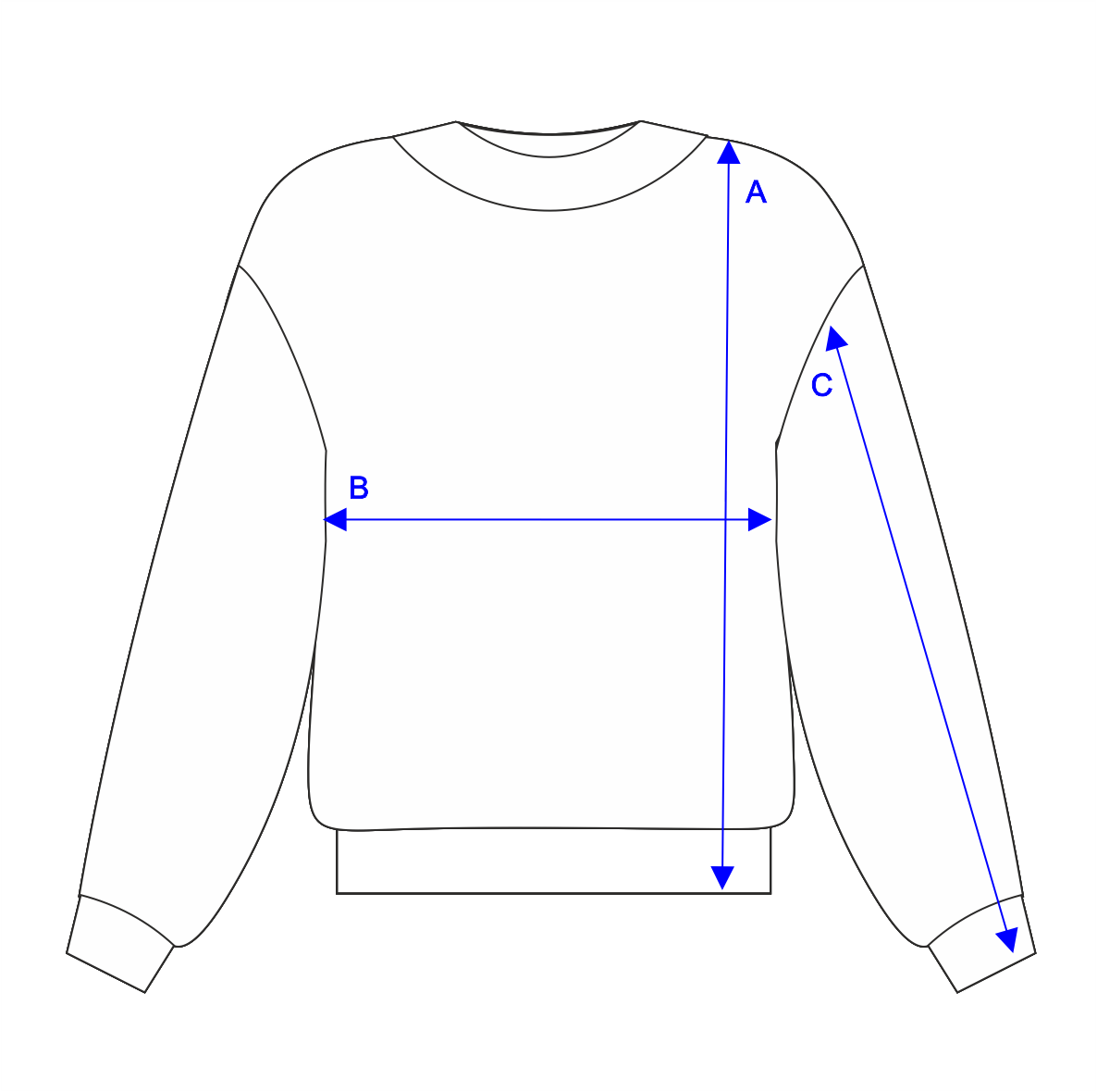 XL – длина изделия (А) - 78 см, обхват груди (В) - 148 см, длина рукава (С) - 86 см