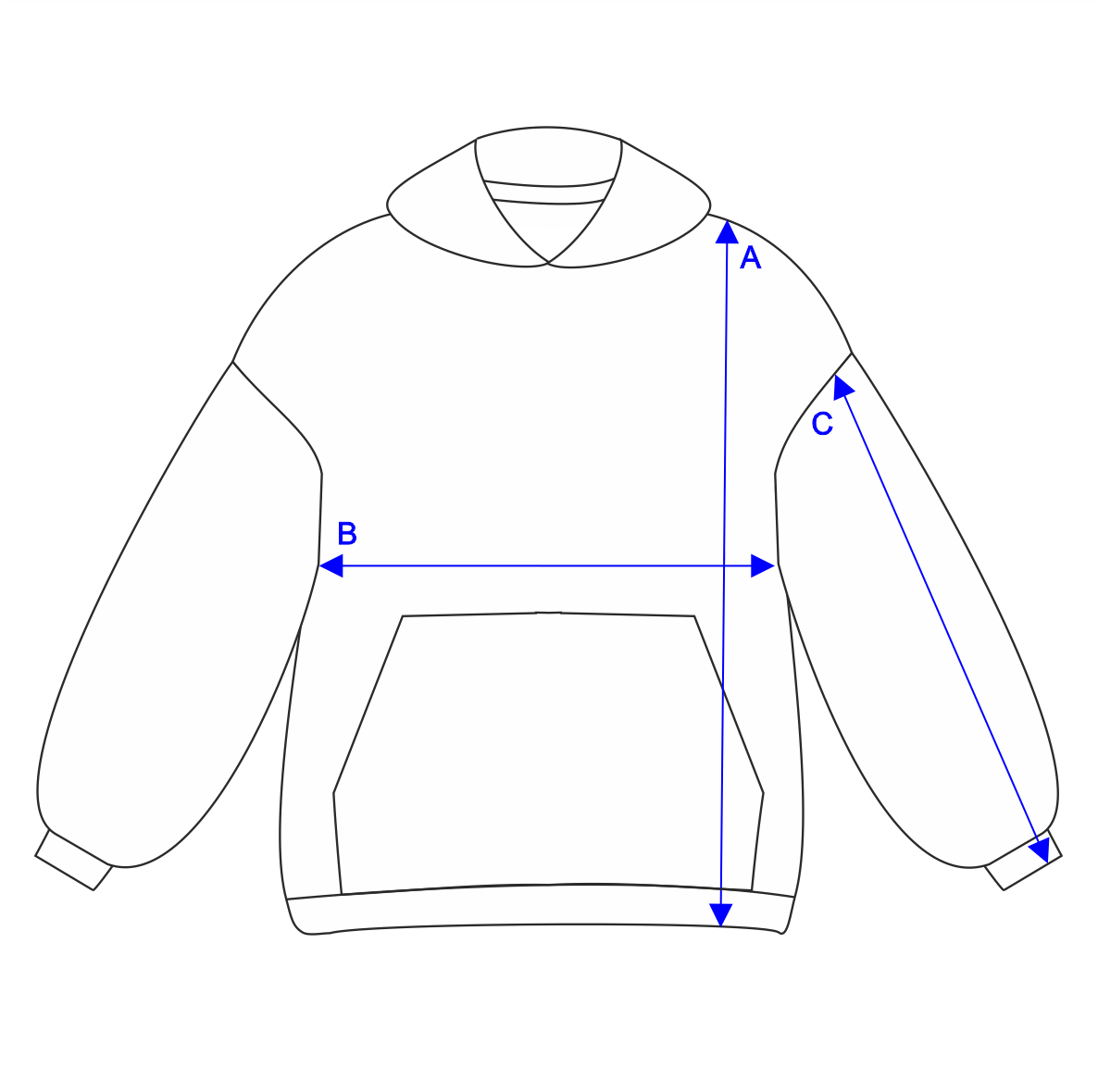 XS – длина изделия (А) - 64 см, обхват груди (В) - 138 см, длина рукава (С) - 78 см S – длина изделия (А) - 64 см, обхват груди (В) - 142 см, длина рукава (С) - 80 см M – длина изделия (А) - 66 см, обхват груди (В) - 144 см, длина рукава (С) - 82 см L – длина изделия (А) - 68 см, обхват груди (В) - 148 см, длина рукава (С) - 82 см XL – длина изделия (А) - 68 см, обхват груди (В) - 152 см, длина рукава (С) - 84 см 2XL – длина изделия (А) - 70 см, обхват груди (В) - 156 см, длина рукава (С) - 86 см 3XL – длина изделия (А) - 72 см, обхват груди (В) - 160 см, длина рукава (С) - 88 см