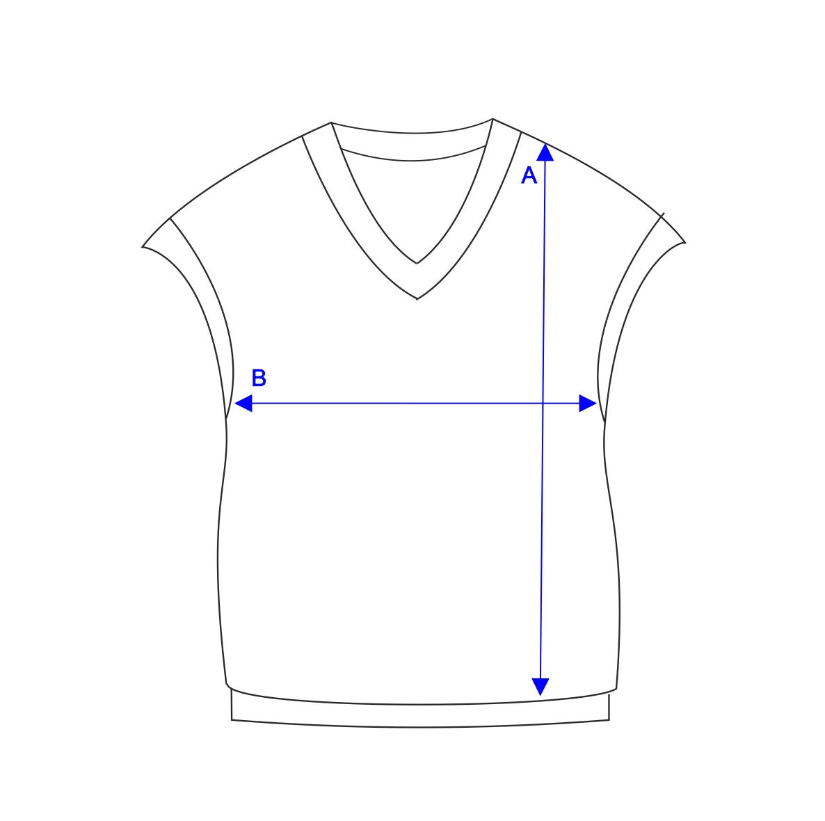 XS – длина изделия (А) - 52 см, обхват груди (В) - 118 см S – длина изделия (А) - 53 см, обхват груди (В) - 122 см M – длина изделия (А) - 54 см, обхват груди (В) - 126 см L – длина изделия (А) - 56 см, обхват груди (В) - 130 см XL – длина изделия (А) - 58 см, обхват груди (В) - 134 см 2XL – длина изделия (А) - 60 см, обхват груди (В) - 138 см 3XL – длина изделия (А) - 60 см, обхват груди (В) - 142 см