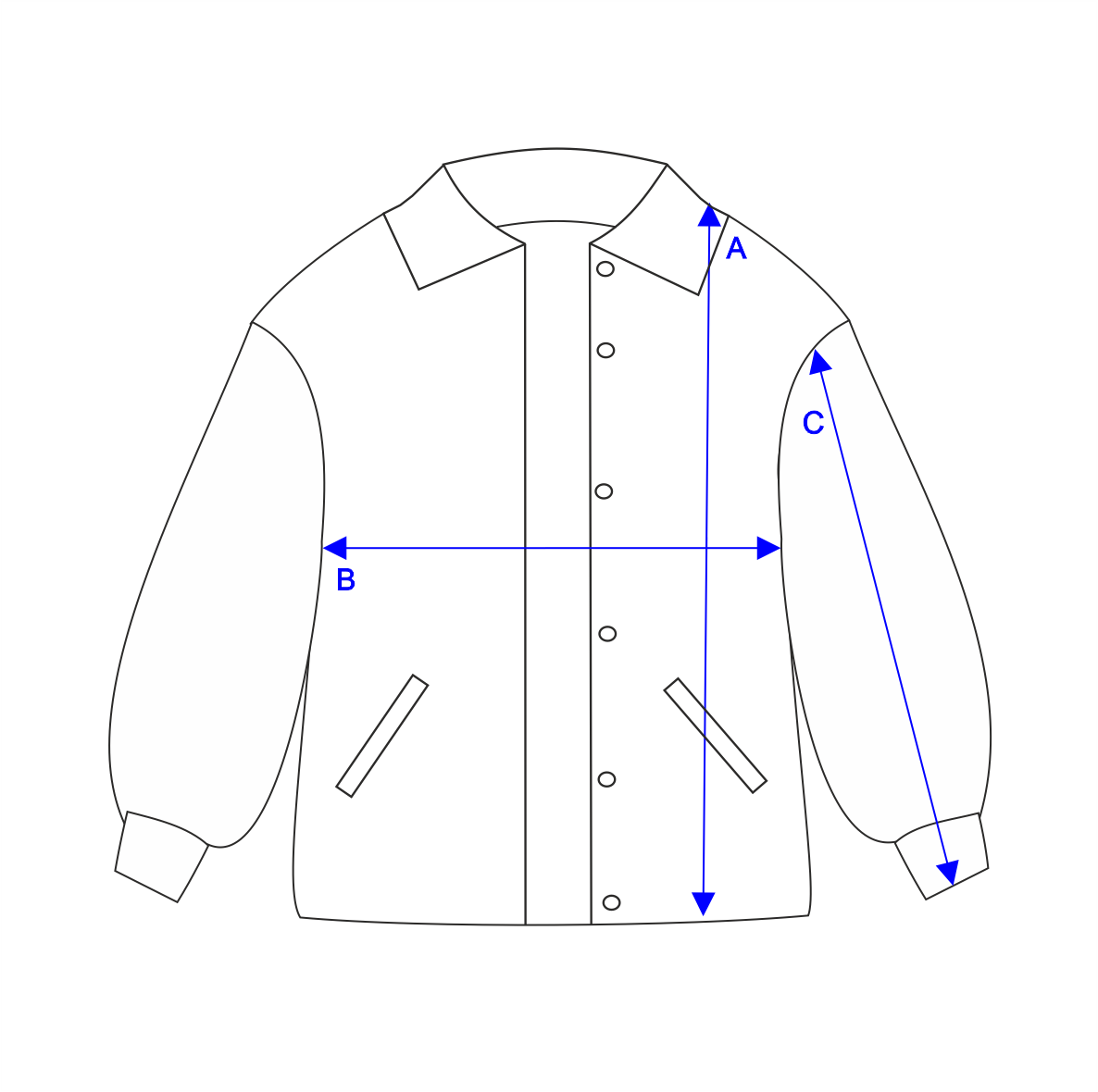 S – длина изделия (А) - 72 см, обхват груди (В) - 144 см, длина рукава (С) - 76 см M – длина изделия (А) - 72 см, обхват груди (В) - 148 см, длина рукава (С) - 78 см L – длина изделия (А) - 74 см, обхват груди (В) - 152 см, длина рукава (С) - 78 см XL – длина изделия (А) - 76 см, обхват груди (В) - 156 см, длина рукава (С) - 80 см 2XL – длина изделия (А) - 78 см, обхват груди (В) - 160 см, длина рукава (С) - 82 см 3XL – длина изделия (А) - 80 см, обхват груди (В) - 164 см, длина рукава (С) - 83 см