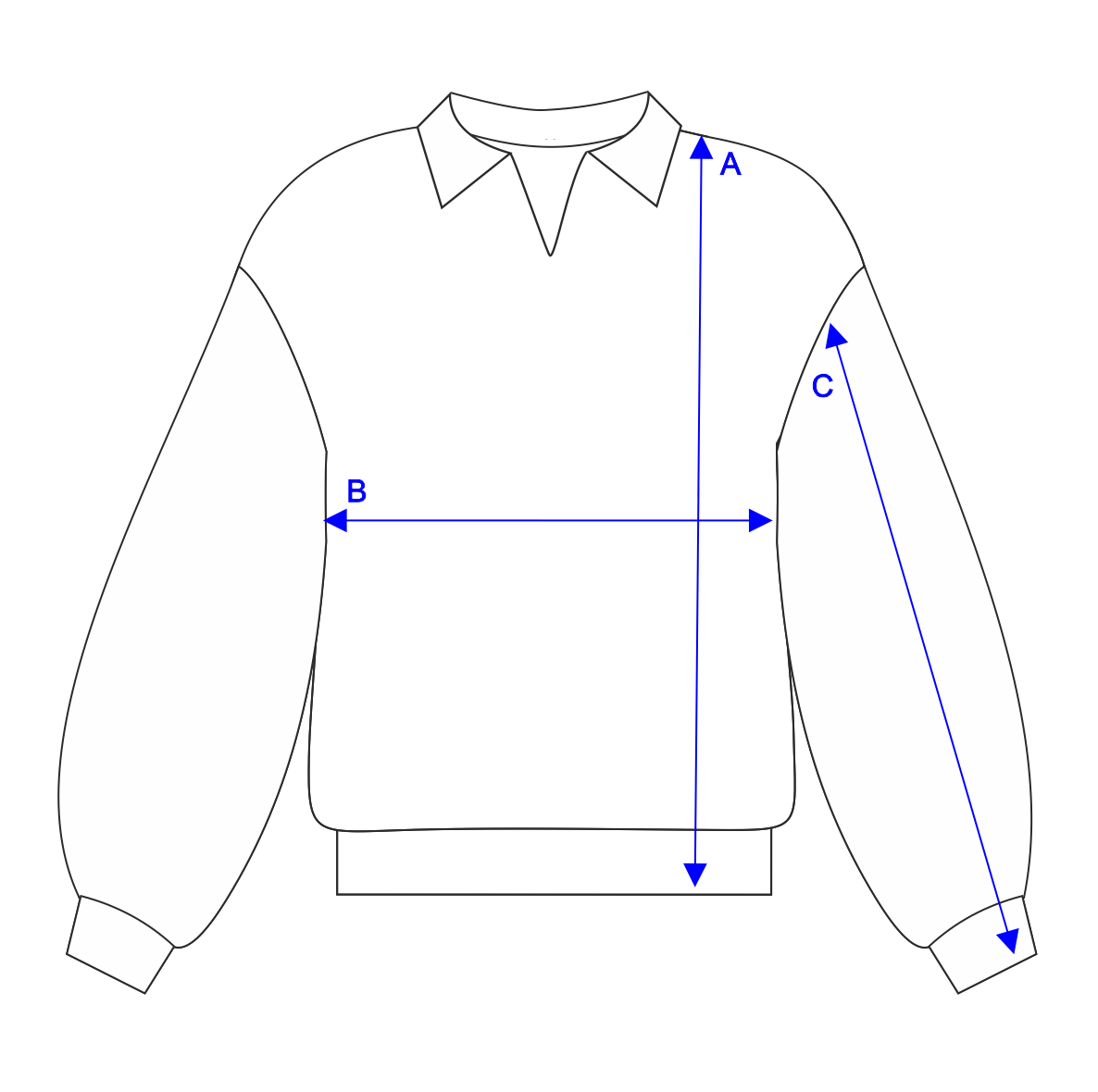 S – длина изделия (А) - 66 см, обхват груди (В) - 146 см, длина рукава (С) - 82 см M – длина изделия (А) - 68 см, обхват груди (В) - 150 см, длина рукава (С) - 84 см L – длина изделия (А) - 70 см, обхват груди (В) - 154 см, длина рукава (С) - 84 см XL – длина изделия (А) - 72 см, обхват груди (В) - 158 см, длина рукава (С) - 86 см 2XL – длина изделия (А) - 74 см, обхват груди (В) - 162 см, длина рукава (С) - 88 см 3XL – длина изделия (А) - 88 см, обхват груди (В) - 166 см, длина рукава (С) - 73 см